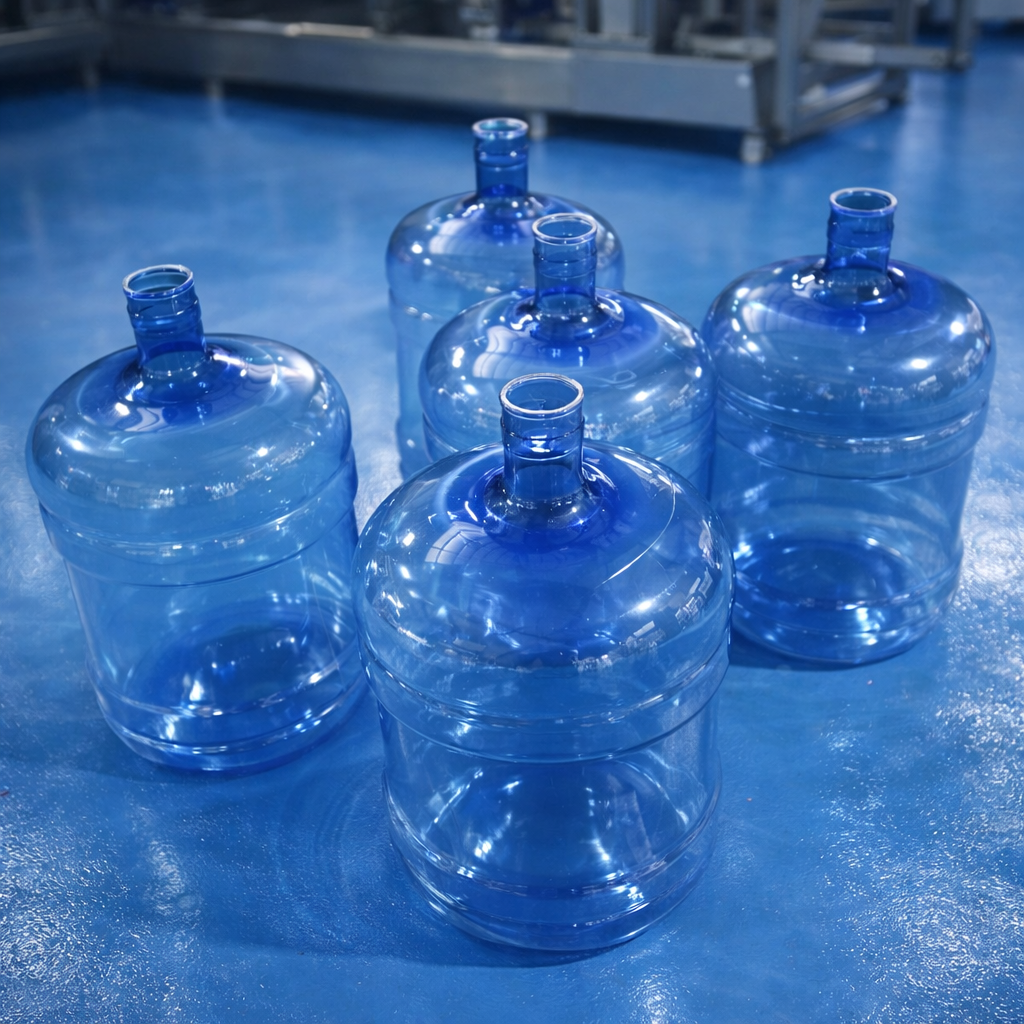 Bonbonne 5 gallons (18,93L) en PET FreeBPA, produite entièrement par SARL AquaFurat. Matère première certifiée, conforme aux normes européennes et algériennes. Contrôle qualité à chaque étape de production.